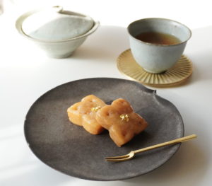 主に白玉粉(またはもち米粉)を使って作られた小さな団子です。団子の中には甘いこしあん(主に小豆のあん)が入っており、表面にはきな粉や黒ゴマがまぶされることがあります。